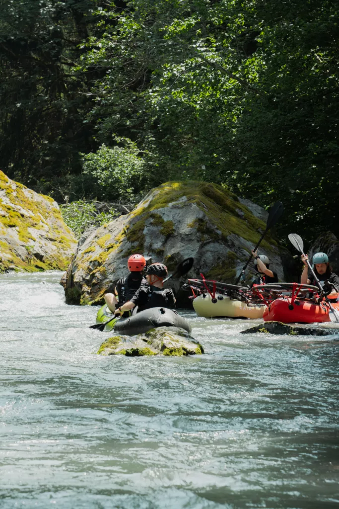 L’eau vive n’aime pas la solitude. Descendre à deux ou plus change tout : un œil pour repérer, une main pour aider, une décision qui se prend ensemble quand le courant s’accélère. Et c’est souvent là que les belles histoires se créent aussi : éclats de rire, petites galères, passages mémorables. L’aventure est meilleure quand elle se partage !