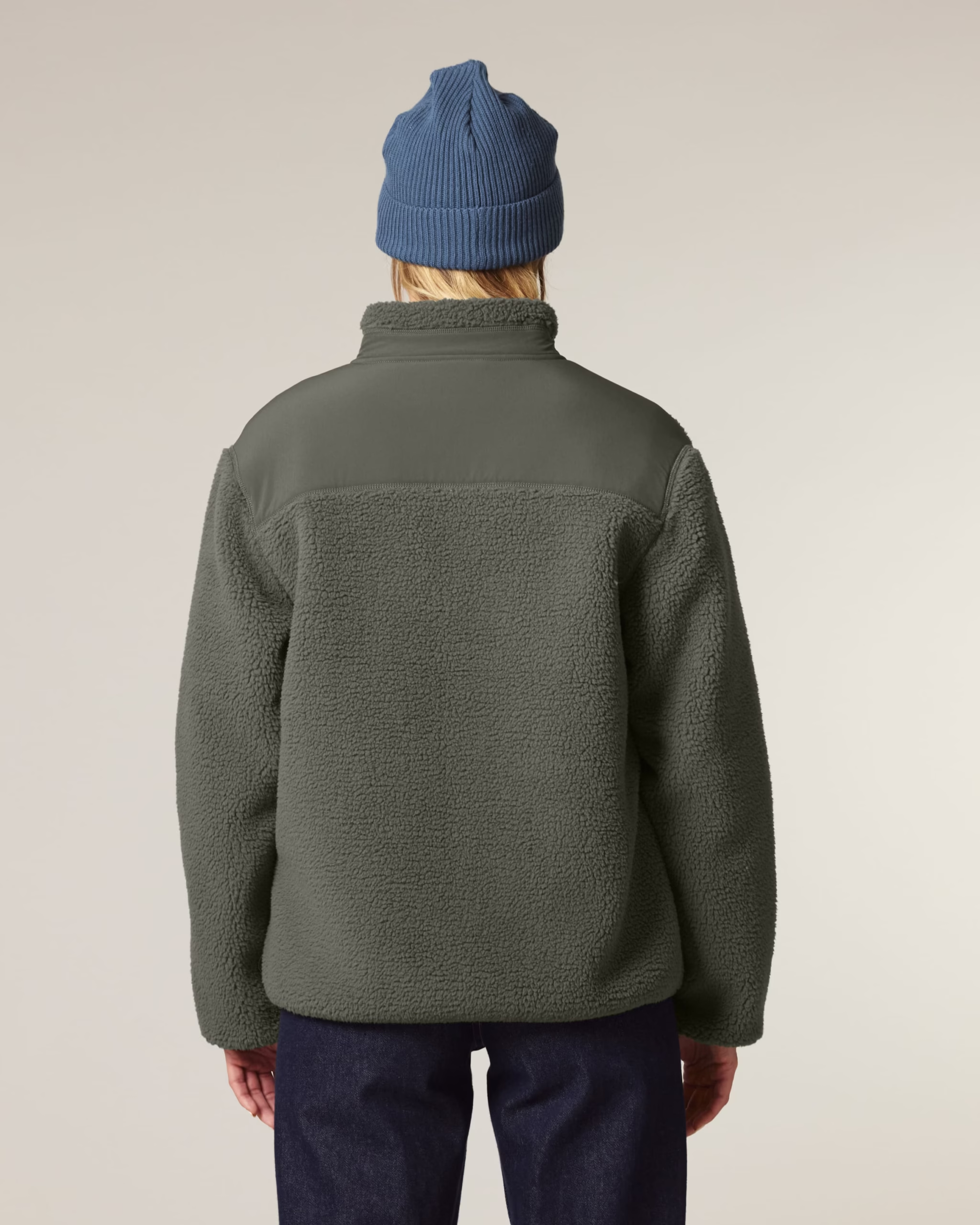 Composition : Sherpa, 100 % polyester recyclé, Tissu lavé. Fermeture éclair Vislon, Couche en polaire Polar avec finition anti-boulochage, Poches passepoilées contrastantes en softshell, Biais élastique recyclé aux poignets et à l’ourlet.