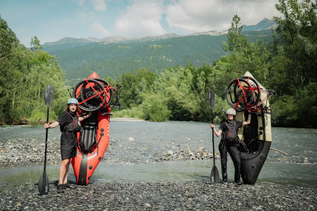 Le bikerafting, c’est l’art de passer des pédales aux rames. Un mélange sauvage entre bikepacking et packraft où, quand ce ne sont pas vos jambes qui moulinent, ce sont vos bras qui prennent le relais. Une discipline née du besoin d’aller plus loin, plus librement. Plus besoin de choisir entre terre et eau !